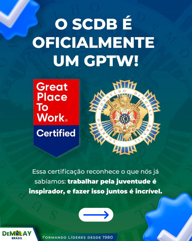 Com o selo GPTW, o DeMolay Brasil dá mais um passo em direção à sua visão: fazer o bem e sermos melhores — todos os dias.